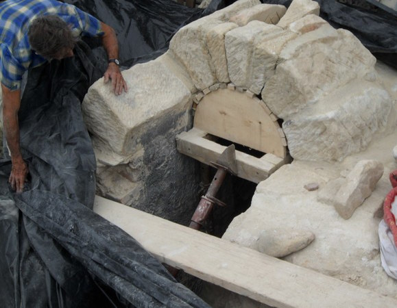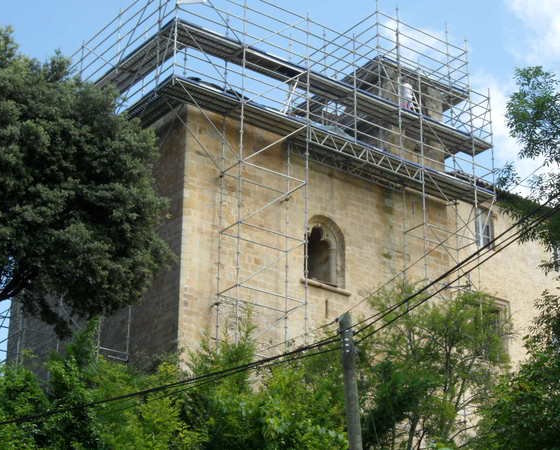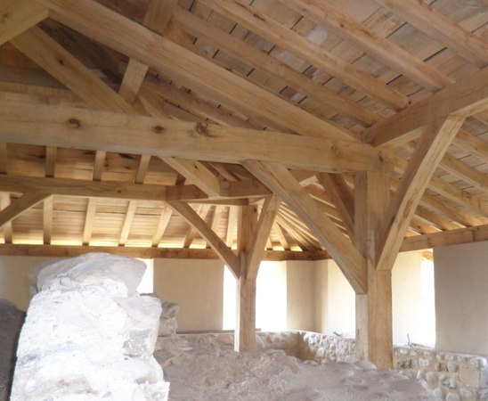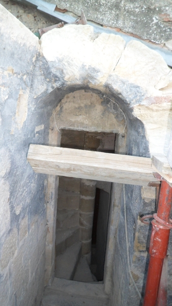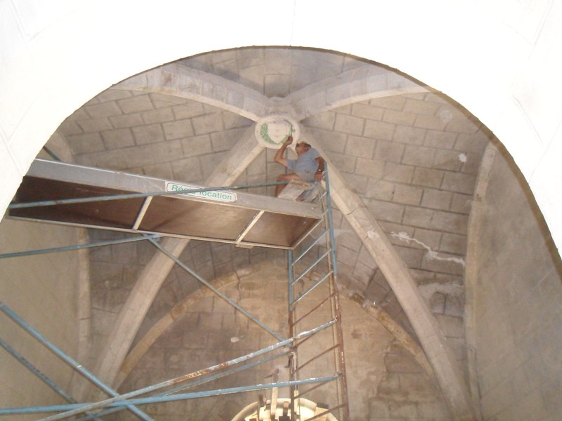 - ceinturage du haut du donjon et réparation des fissures intérieures.