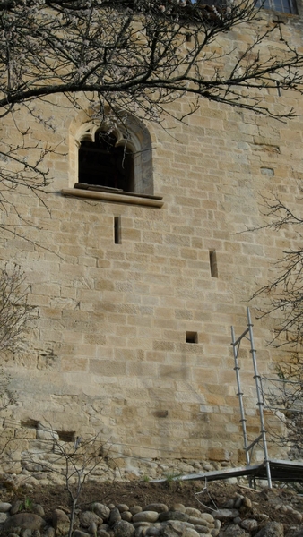 - le rehaussement de la toiture du donjon sur des créneaux pour ne plus reposer sur la coupole de la pièce du dessous,